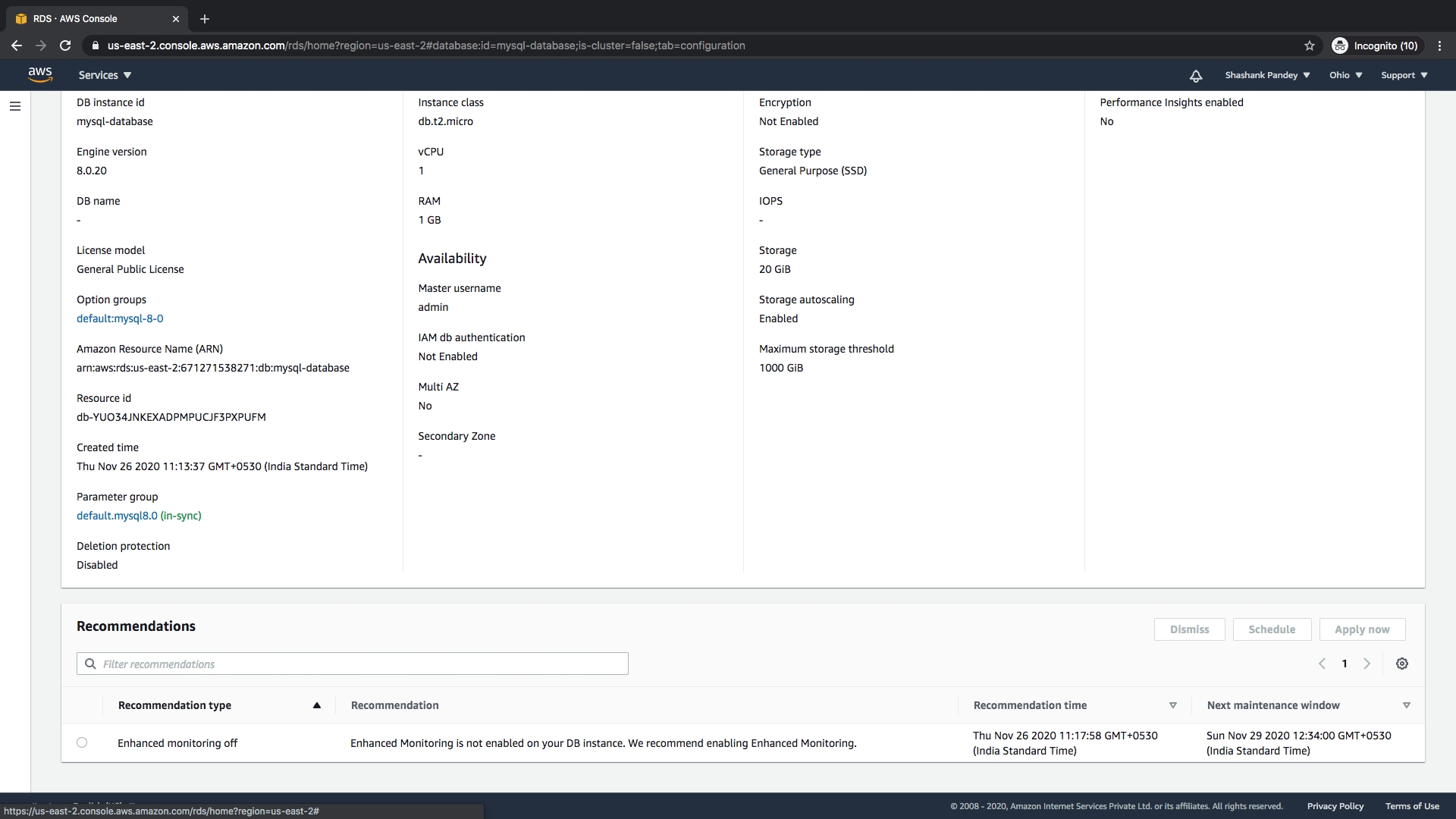 Check the parameter group for mysql instance under configuration tab